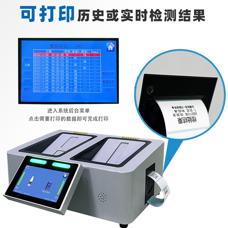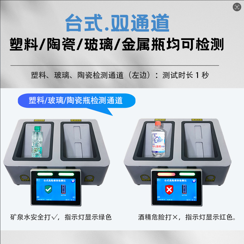 3、檢測(cè)速度:僅需1秒即能檢測(cè)出非金屬材質(zhì)瓶液體。